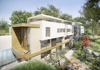 The development also features green roofs and rainwater and grey water recycling systems as water conservation measures.